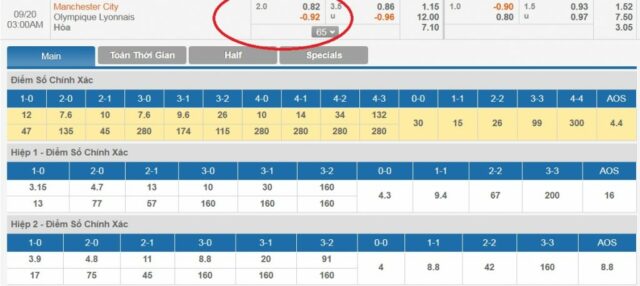 Trong trường hợp 3, đội chủ nhà Manchester City chấp Lyon 2 hòa. Giả sử người chơi đặt 100 đô ở đội cửa trên. Nếu kết thúc trận đấu, Manchester City thắng cách biệt 3 bàn trở lên (3-0, 4-0, 4-1, …) thì người chơi chọn cửa trên sẽ thắng cược. Tổng số tiền thu được là 100 đô + 100 đô x 0,82 = 182 đô (bao gồm 100 đô la tiền gốc).
