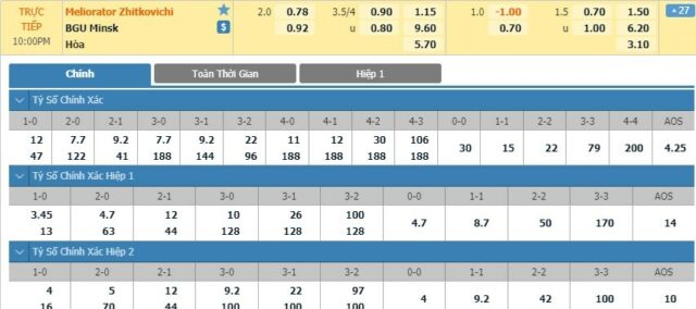 Các ví dụ về kèo cược 2 hòa